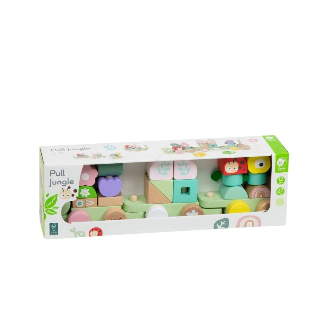 Slatka gusjenica vodi dijete na izlet u svijet kocaka. Prekrasne pastelne boje, prijateljski likovi životinja i drugi motivi nude neograničene mogućnosti igre. Slagalica potiče logičko razmišljanje i izuzetno važnu koordinaciju – oko-ruka. Tijekom igre dijete će se upoznavati sa slaganjem, sortiranjem, gradnjom, sastavljanjem i rastavljanjem. Vlakac se može slobodno kombinirati tijekom igre, stvarajući različite konstrukcije i pritom razvijati svoju maštu, kreativnost i kreativnost.