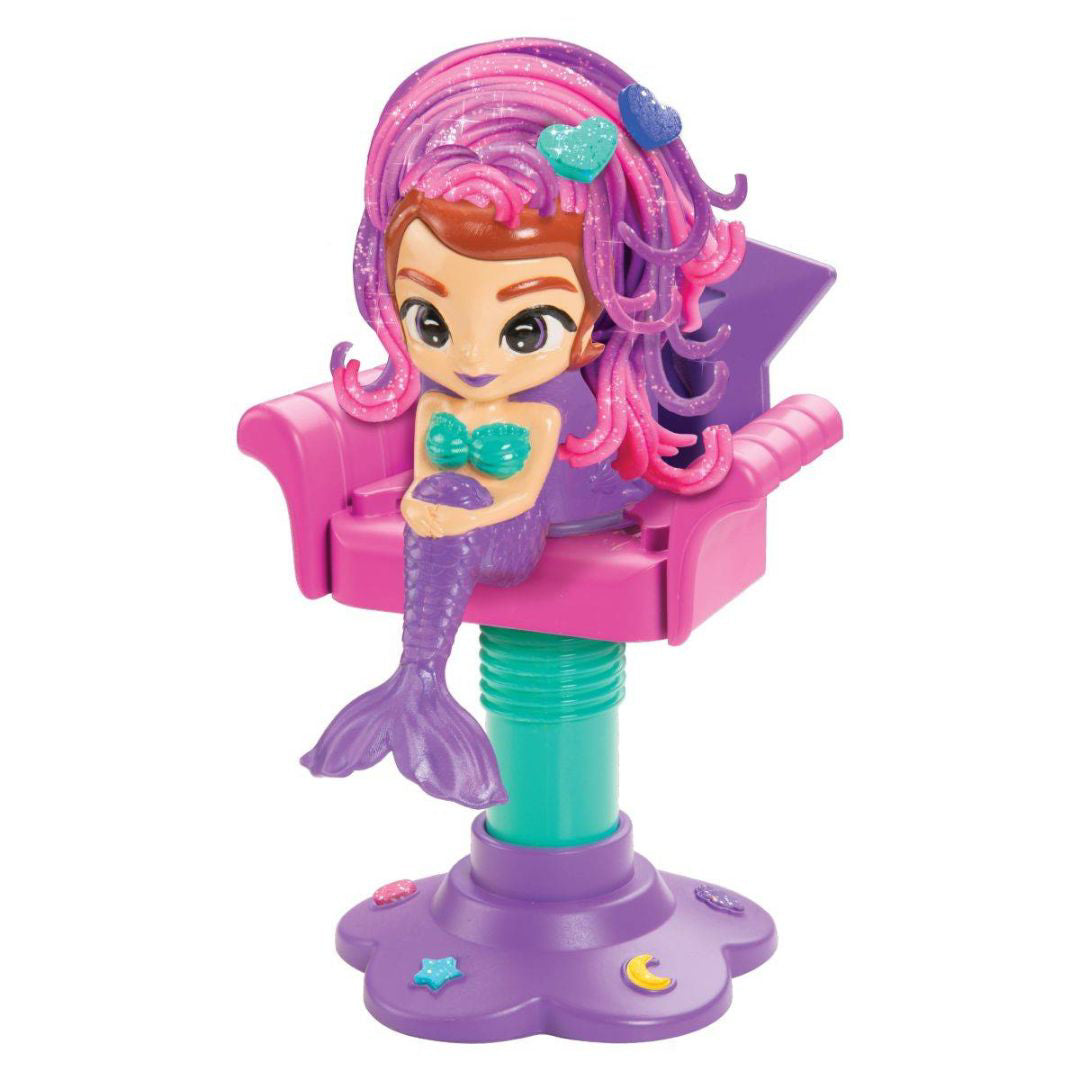 Uđite u čarobni svijet Sparkling Mermaid Stylin' Salon, gdje djeca mogu stvarati i oblikovati prekrasne frizure za slatke morske djevojčice! Jednostavno stavite plastelin u modele sirena, postavite ih na stolac i pritisnite prema dolje – promatrajte kako dugački svjetlucavi vlasovi rastu! Zatim ih možete šišati, oblikovati i ukrašavati prema vlastitoj mašti.
