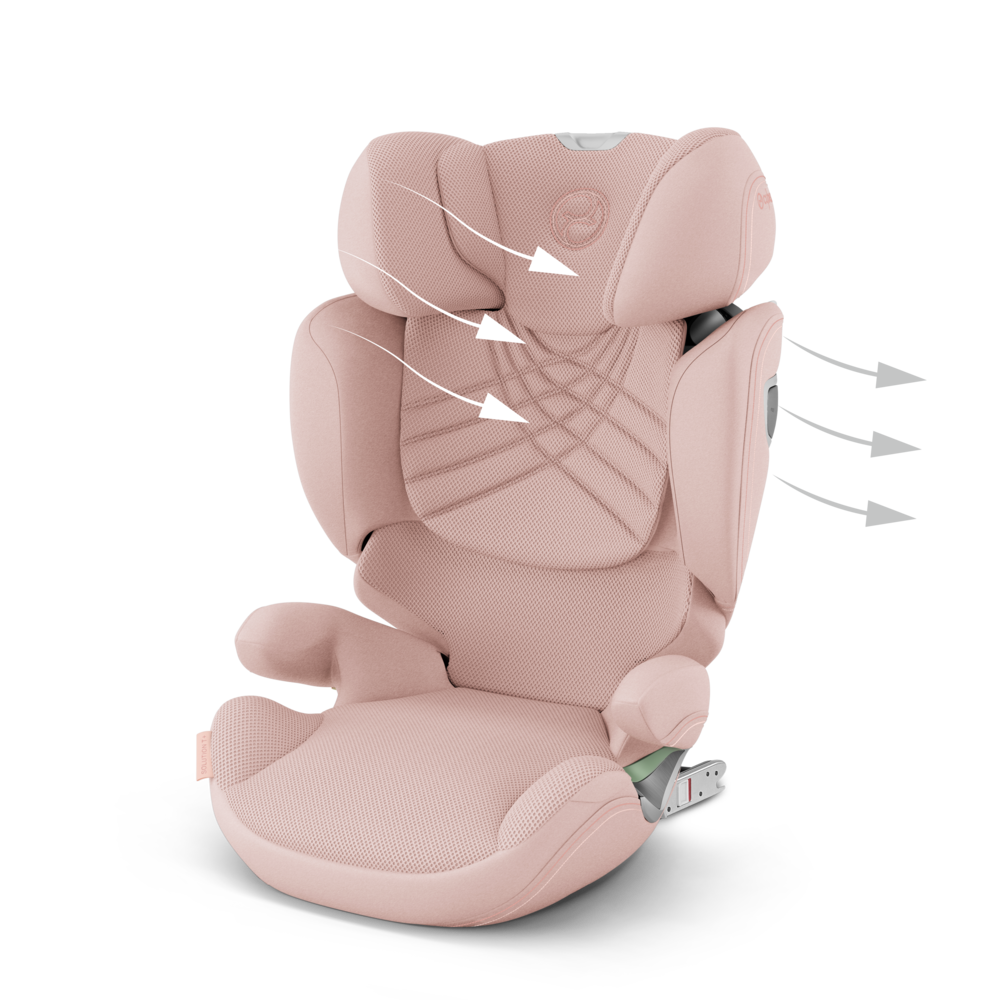 Autosjedalica Cybex® Solution T i-Fix 2/3 pruža visoku sigurnost djeteta na putu. Sustav zaštite L.S.P. plus, koji je ugrađen u bočne strane naslona za glavu, pruža 20% manji pritisak na djetetovo tijelo u slučaju bočnog sudara. Sustav apsorbira snagu udarca u linearnom nizu reakcija. Glava djeteta učinkovito se vodi u siguran položaj zahvaljujući patentiranoj nagibnoj potpori za glavu.