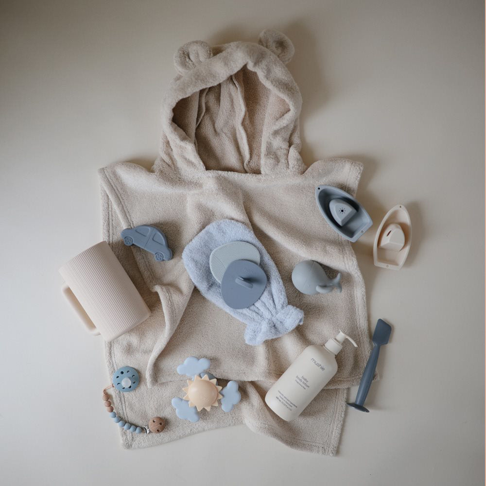 Mushie dječji pončo izrađen je od 100% organskog pamuka i dizajniran da pruži maksimalnu udobnost nakon kupanja ili plivanja. Otvoreni dizajn ponča pojednostavljuje odijevanje za zaposlenu malu djecu, omogućavajući brzo i jednostavno oblačenje i svlačenje. Dizajn uključuje kapuljaču sa slatkim medvjeđim ušima koje dodaju šarm svakom sušenju.