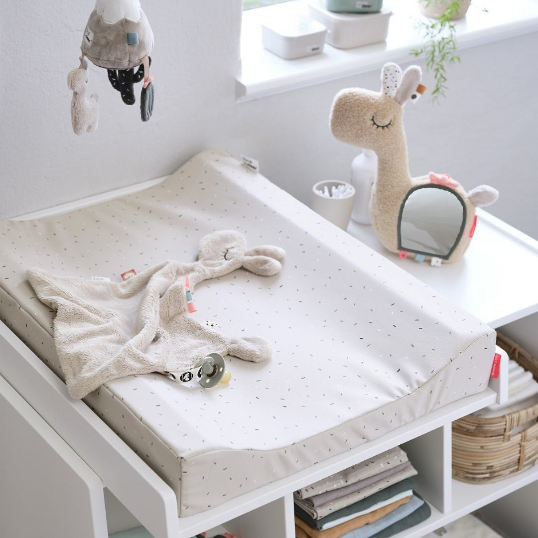 Udobna i praktična podloga za previjanje s mekom pjenastom jezgrom i vodootpornom površinom koju je lako obrisati. Navlaka se jednostavno skida pomoću skrivene zatvarača i može se prati u perilici rublja.