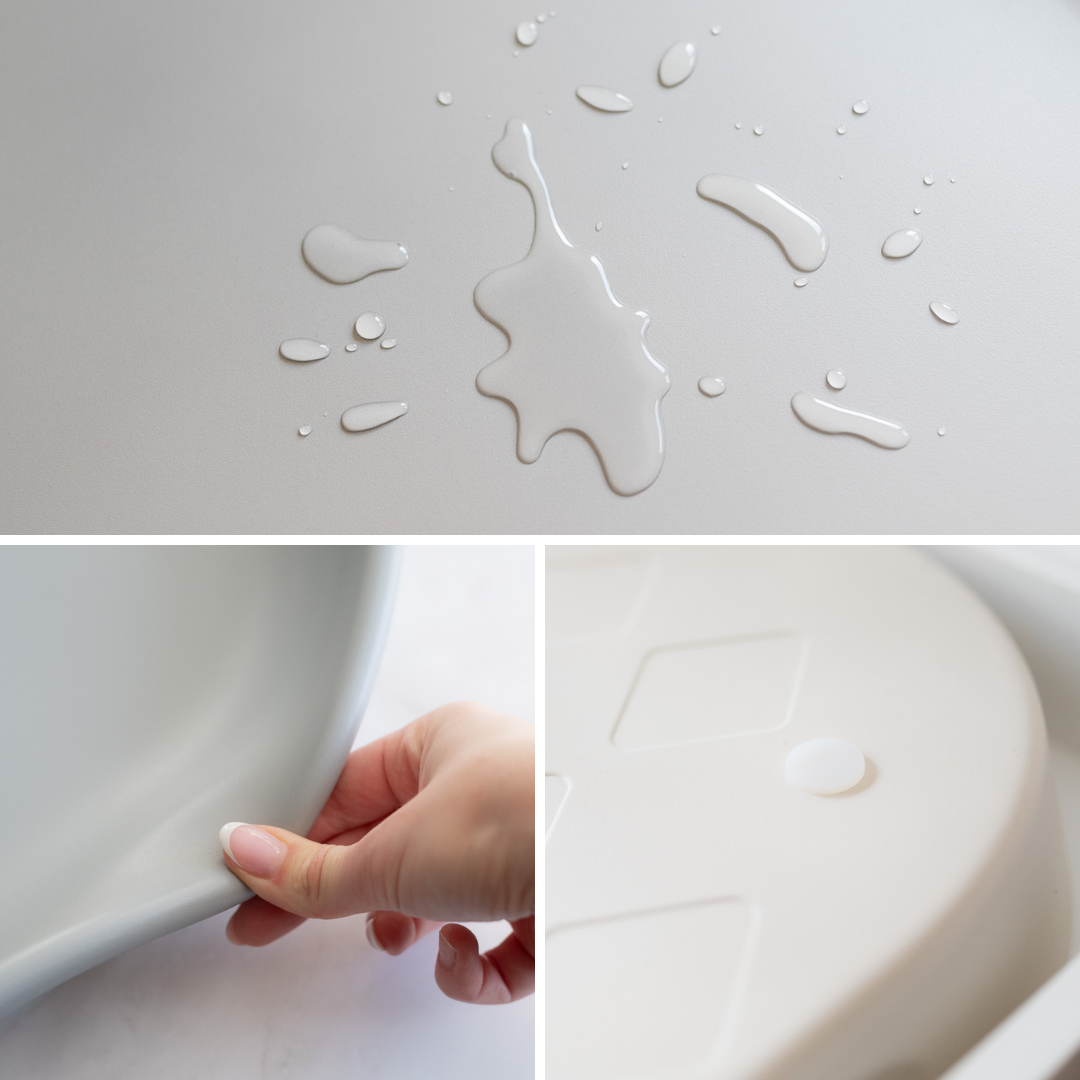 - Vodoodbojna površina: Laka za čišćenje i otporna na mrlje.