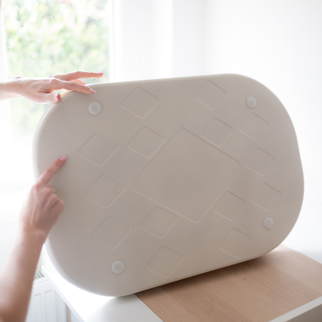 - Podloga za previjanje je lagana i jednostavna za prenošenje, što omogućuje upotrebu bilo gdje – kod kuće ili na putu.
