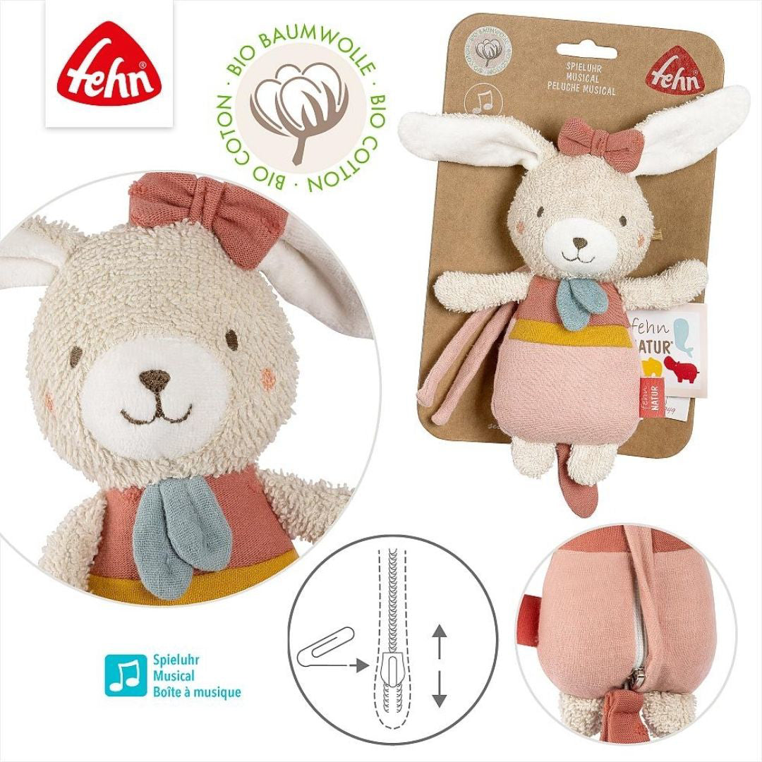 Preslatki zeko Fehn® oduševit će mališana nježnom melodijom koja potiče slušanje, promatranje i igru te pomaže pri smirivanju. Igračka je izrađena od mekanog i ugodnog materijala, zbog čega će je vaše dijete rado nositi svuda sa sobom. Zahvaljujući uklonjivom glazbenom modulu, igračku možete jednostavno oprati u perilici rublja.