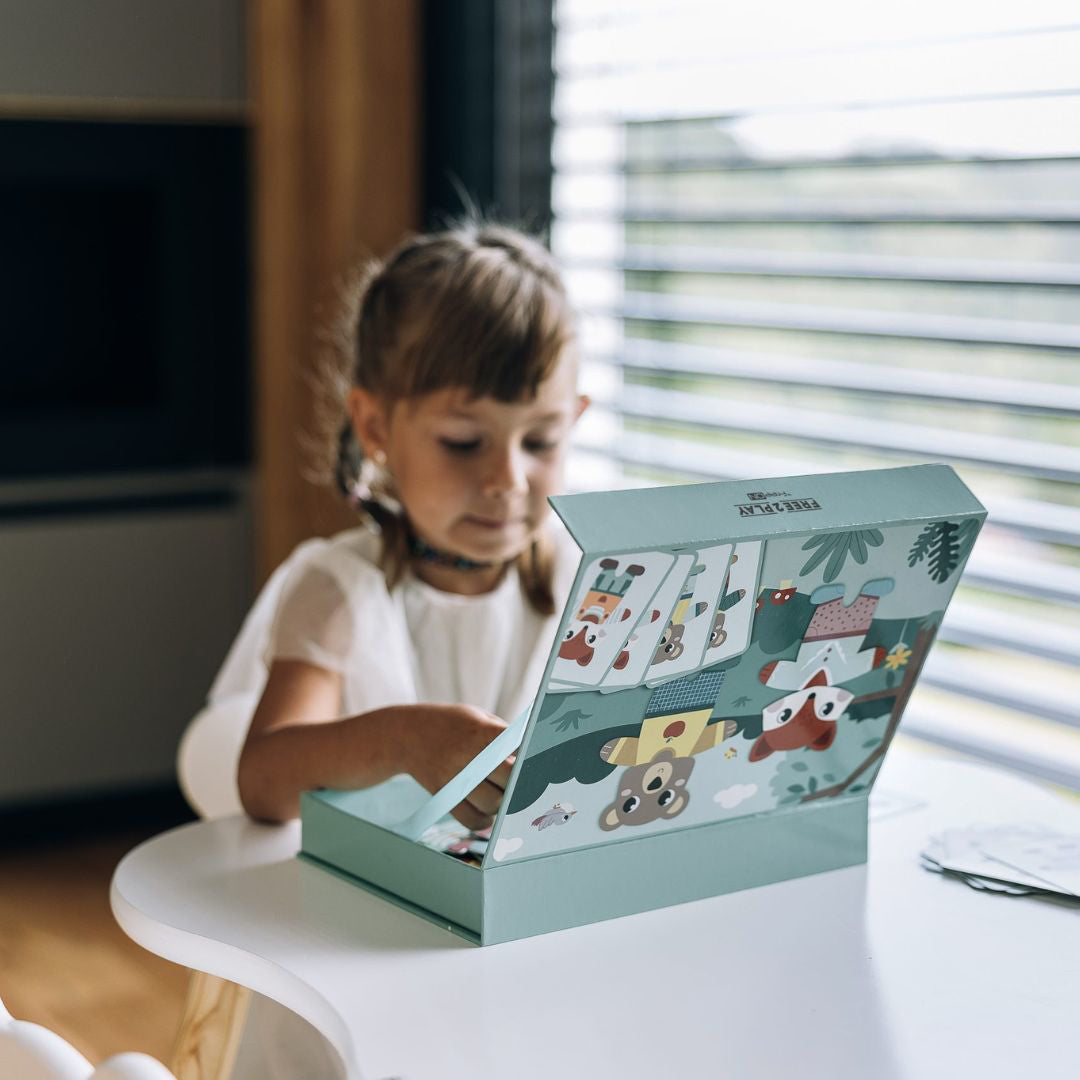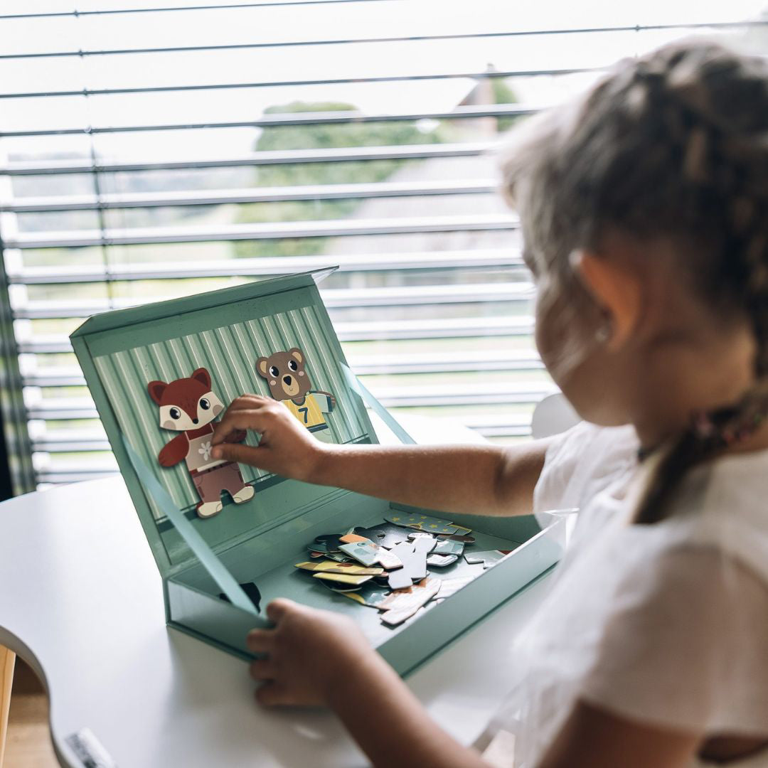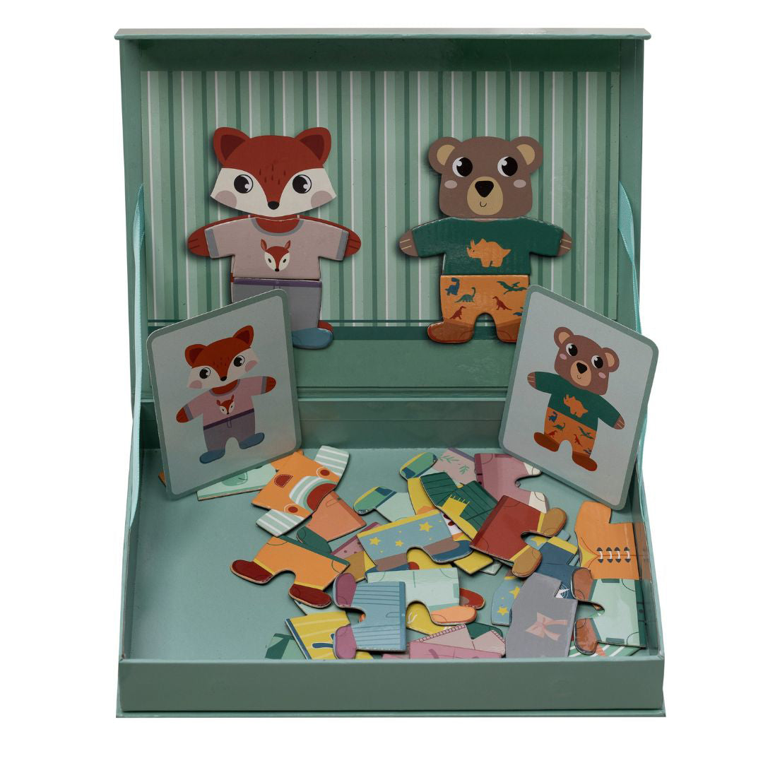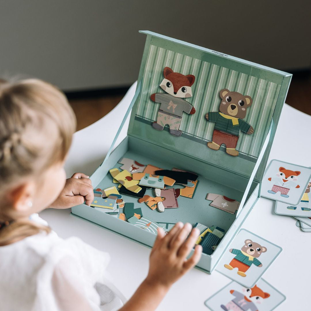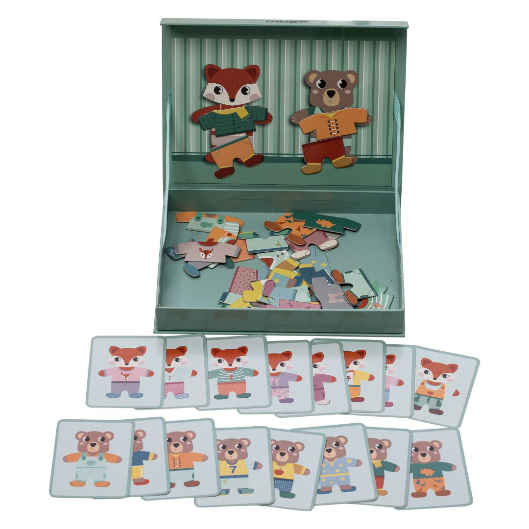 Obradujte svoje mališane s jedinstvenom magnetnom igrom u kojoj mogu oblačiti slatke životinje! Magnetna igra Obuci životinje potiče kreativnost, maštu i učenje kroz igru. Djeca mogu koristiti svoju maštu ili slijediti prijedloge na priloženim karticama. Sastavljanka omogućuje beskonačne kombinacije odjeće i dodataka, što pruža sate zabave, dok istovremeno potiče proširivanje vokabulara i koordinaciju. Idealna je za kućnu upotrebu ili na putovanjima, a također je i savršen poklon!