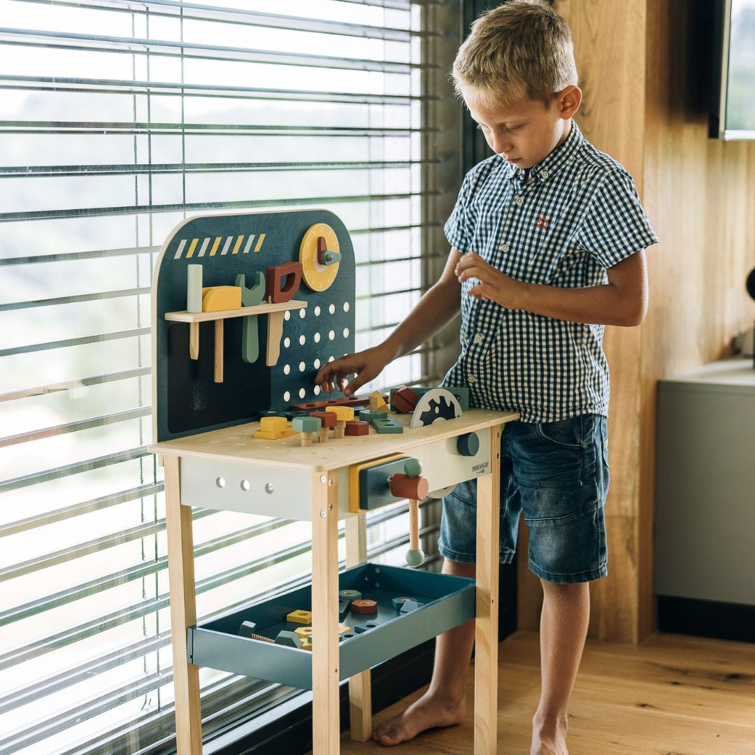Za male majstore! Moja prva drvena radionica savršen je komplet za djecu koja obožavaju stvaranje, gradnju i istraživanje. S raznim dodacima, poput čekića, odvijača i vijaka, vaš mališan može poboljšati svoju finu motoriku, koordinaciju ruka-oči i maštu. Sve je sigurno dizajnirano i izrađeno od visokokvalitetnog drva, što osigurava dugotrajan užitak.