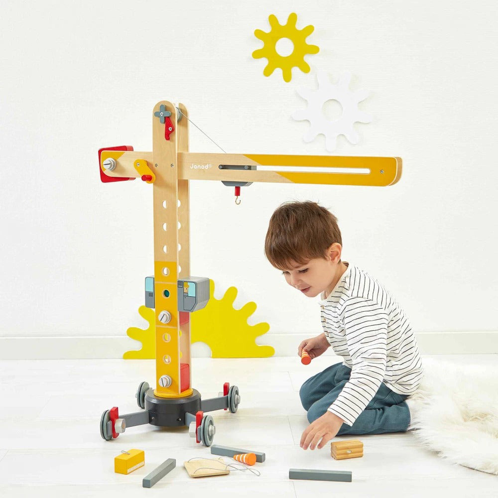 Ova velika drvena dizalica za djecu pravi je hit među malim graditeljima od 3. godine nadalje. Sa svojih 74 cm visine središnji je element svake maštovite gradnje i nudi sate kreativne igre. Djeca mogu prevoziti opremu, upravljati ručkama i balansirati košarom poput pravih stručnjaka!