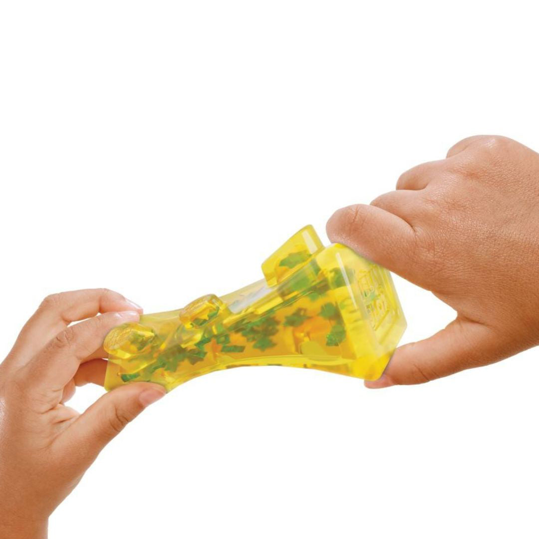 - Učenje kroz igru: Jelly Blox podržava ključne faze razvoja omogućujući senzornu igru koja djeci pomaže razviti koordinaciju ruku i očiju, motoričke vještine i kreativnost. Neke od kocki napunjene su senzornim materijalima poput pijeska, pjenastih kuglica, mini zvjezdica i mini ciglica, što donosi dodatnu zabavu!