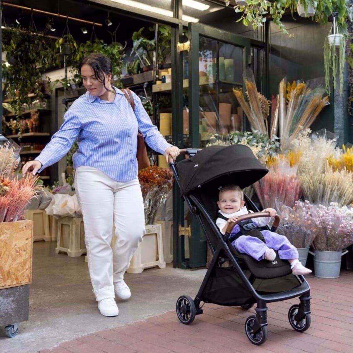 Dječja kolica Joie® Pact™ Pro oduševljavaju roditelje i mališane. Roditeljima nude upravljač podesiv po visini te brz i jednostavan sustav kočenja koji se aktivira nogom. Nude mogućnost zaključavanja prednjih kotača i izvrsnu okretnost uz sustav Sweet Stride™ s prednjim rotirajućim kotačima. Na svakom putovanju oduševit će vas praktična prozračna košara za kupnju, koja je lako dostupna sa stražnje strane, a na prednjoj strani ima podignut rub kako bi sve vaše potrepštine (mokre ili suhe) bile sigurno zaštićene tijekom šetnje. Mališanima udobnost pružaju mekani, podstavljeni i podesivi oslonac za noge, sigurnosni luk, udoban sigurnosni pojas s podstavljenim trakama, zaštitna krović s produženim sjenilom te podesivi naslon sjedala u bilo koji položaj.