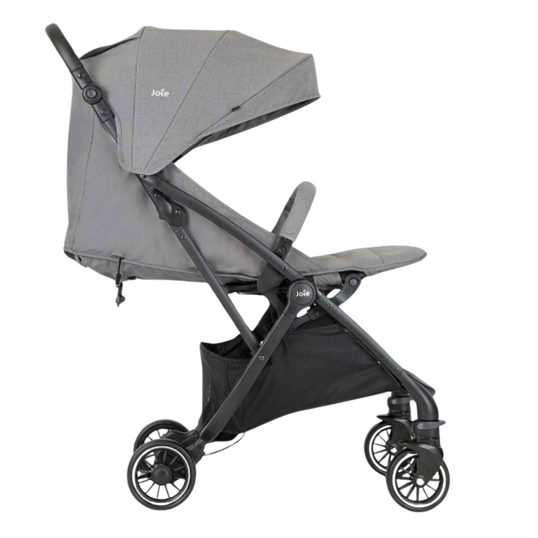 Joie® Tourist™ S združuje resnično vse. Poleg izjemne prilagodljivosti in možnosti uporabe v različnih starostnih obdobjih vas bo zagotovo navdušile tudi vse njegove lastnosti. Izjemno lahek voziček lahko samo v hipu razstavite ali zložite; minimalistično avtomatsko zlaganje omogoča, da voziček ne zasede veliko prostora v vašem avtomobilu, letalu ali doma. Kljub lahkem ogrodju je voziček izjemno vzdržljiv in prijetno vodljiv. Staršem ponuja po višini nastavljivo krmilo ter hiter in enostaven zavorni sistem, ki se aktivira z nogo. Ponuja možnost zaklepanja sprednjih koles in odlično okretnost s pomočjo sistema Sweet Stride™ s sprednjima vrtljivima kolesoma. Na vsaki poti vas bo navdušila praktična nakupovalna košara, ki je hitro dostopna z zadnje strani, na sprednji strani pa ima privzdignjeno stranico, da bodo vse vaše potrebščine med sprehodom na varnem in dobro zaščitene.