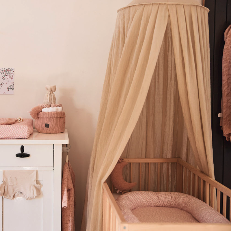 Predivni baldahin za postelju služi kao mreža za zaštitu od komaraca i ujedno nudi mališanu osjećaj sigurnosti. Baldahin je predivno dopuni svaku sobicu. Tekstura tkanine je prozirna.