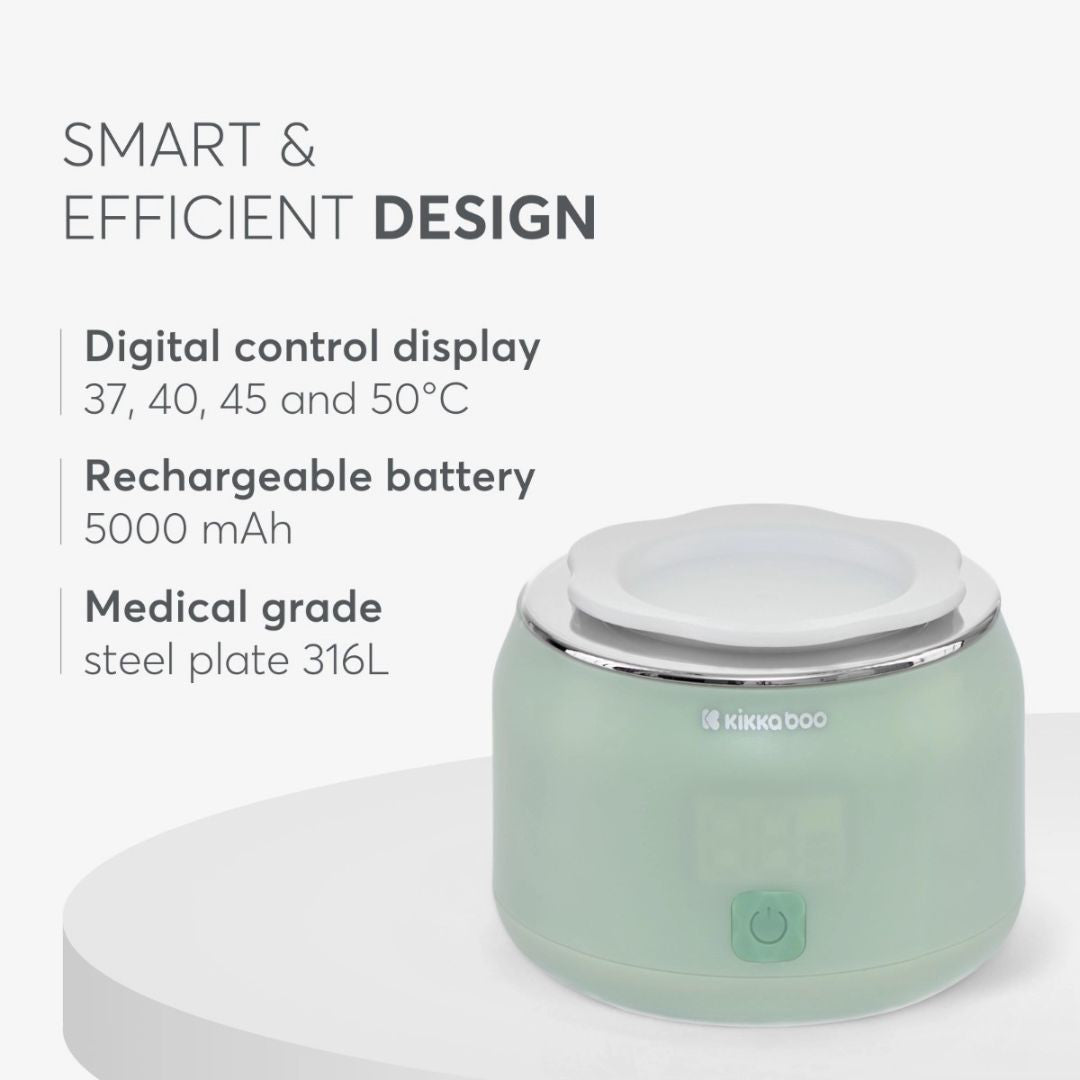Dizajniran je s digitalnim zaslonom i četiri temperaturna načina (37°C, 40°C, 45°C, 50°C), koji odgovaraju različitim potrebama i preporukama za hranjenje. Tako možete uvijek zagrijati mlijeko na idealnu temperaturu.