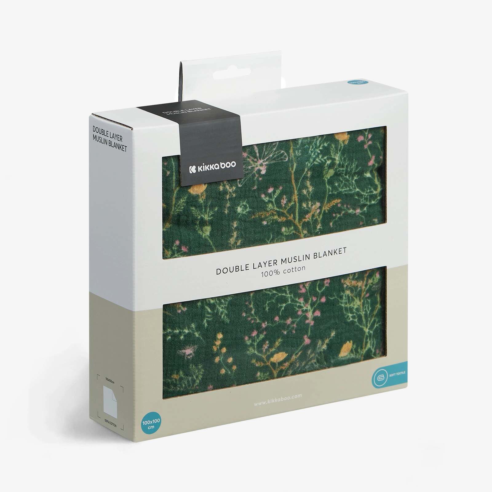 KikkaBoo® dekica od muslina 100x100 cm 2-slojni Secret Garden Green