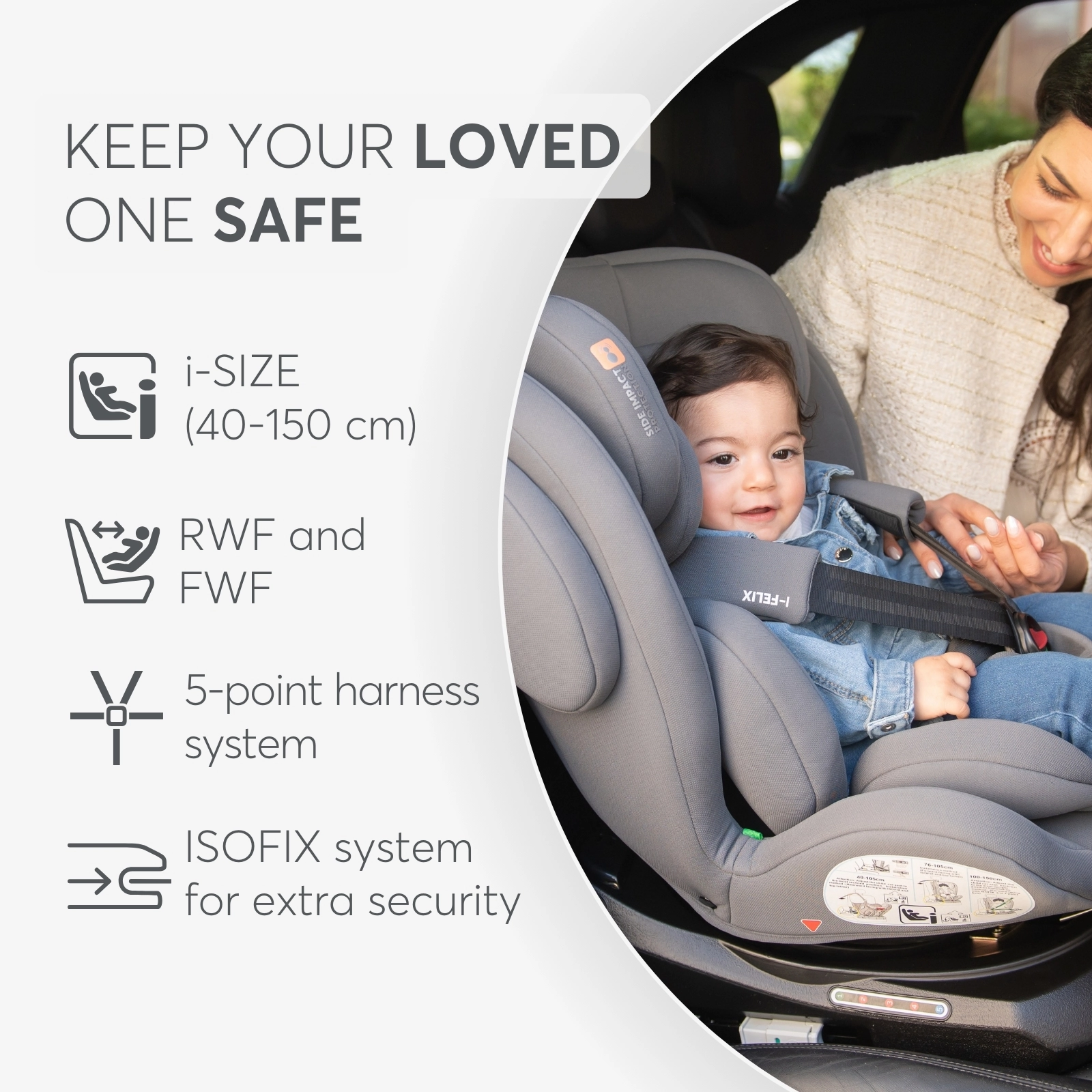 Autosjedalica i-Felix i-SIZE nudi širok raspon sigurnosnih značajki i prilagodljivosti kako bi vašem djetetu osigurala udobnu i sigurnu vožnju u automobilu.