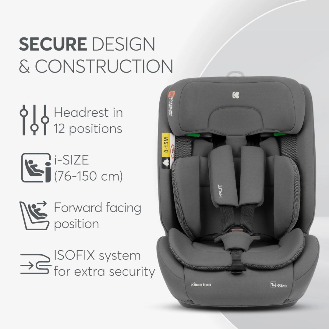 KikkaBoo® Dječja autosjedalica i-Flit i-SIZE (76-150 cm) Light Grey