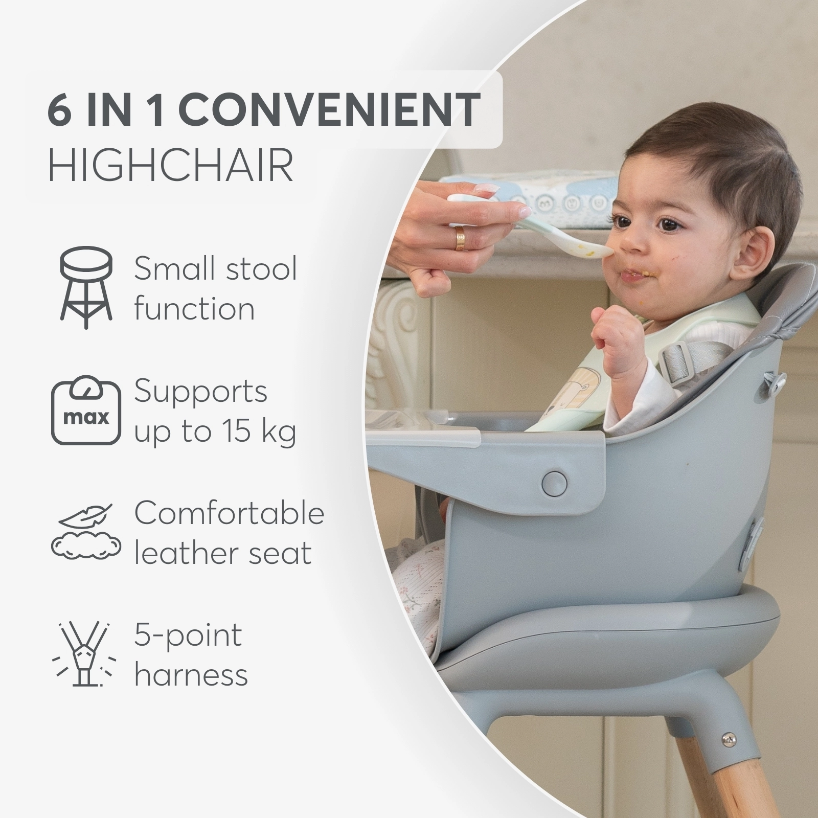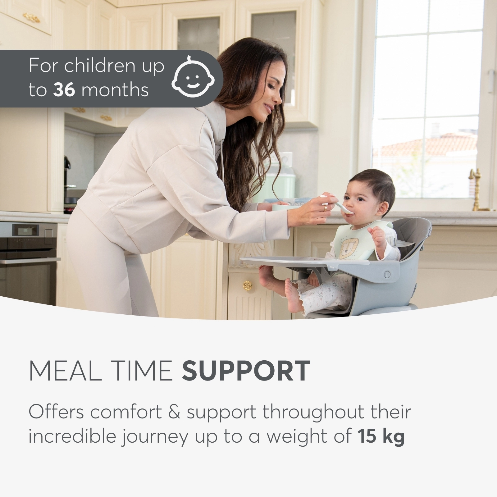Woody 2u1 hranilica savršen je spoj funkcionalnosti, dizajna i udobnosti za vaše dijete. Prikladna je za djecu koja mogu samostalno sjediti i prilagođava se različitim fazama rasta. Zahvaljujući sigurnosnom pojasu u 5 točaka i protukliznim nogama, osigurava potpunu stabilnost i sigurnost za vrijeme hranjenja.