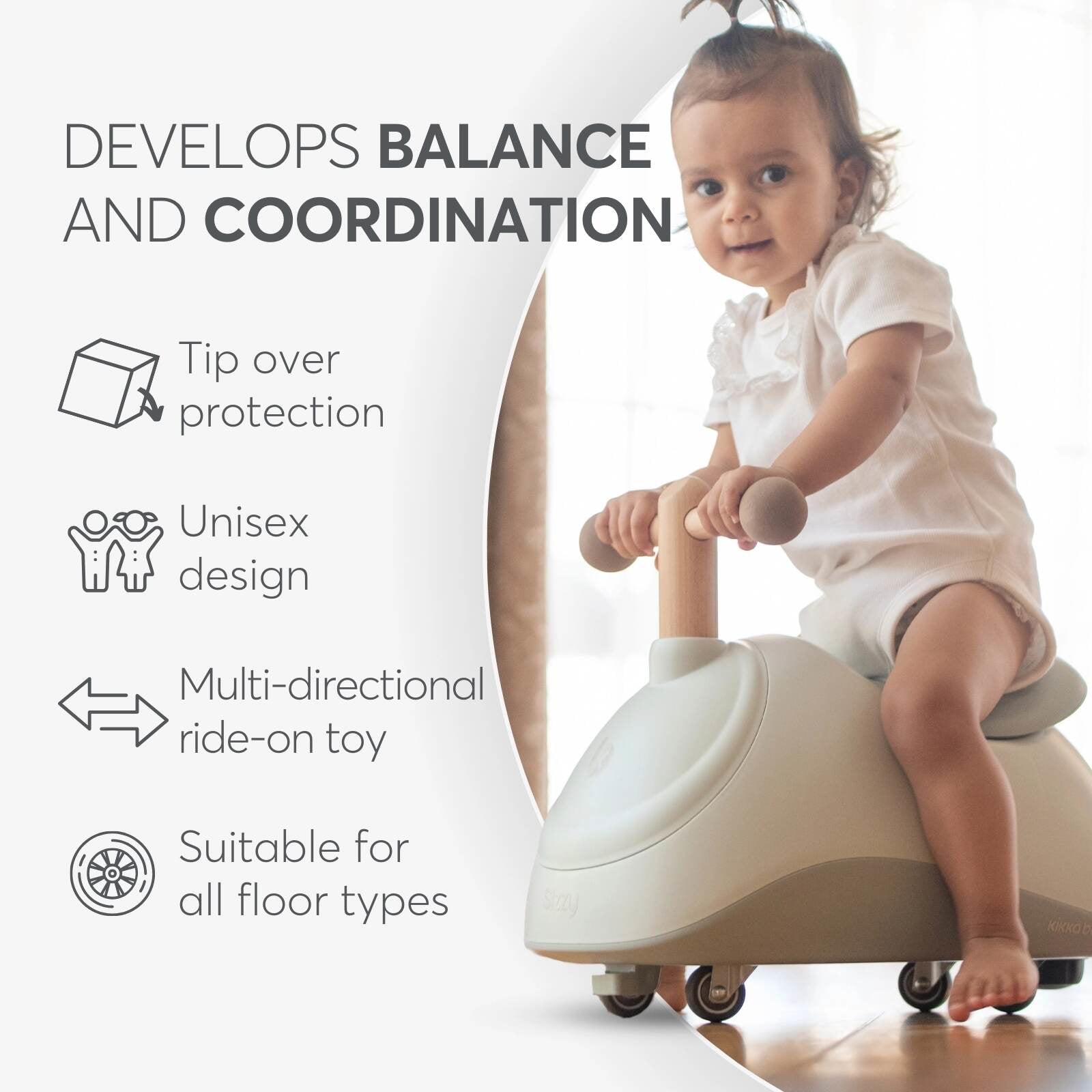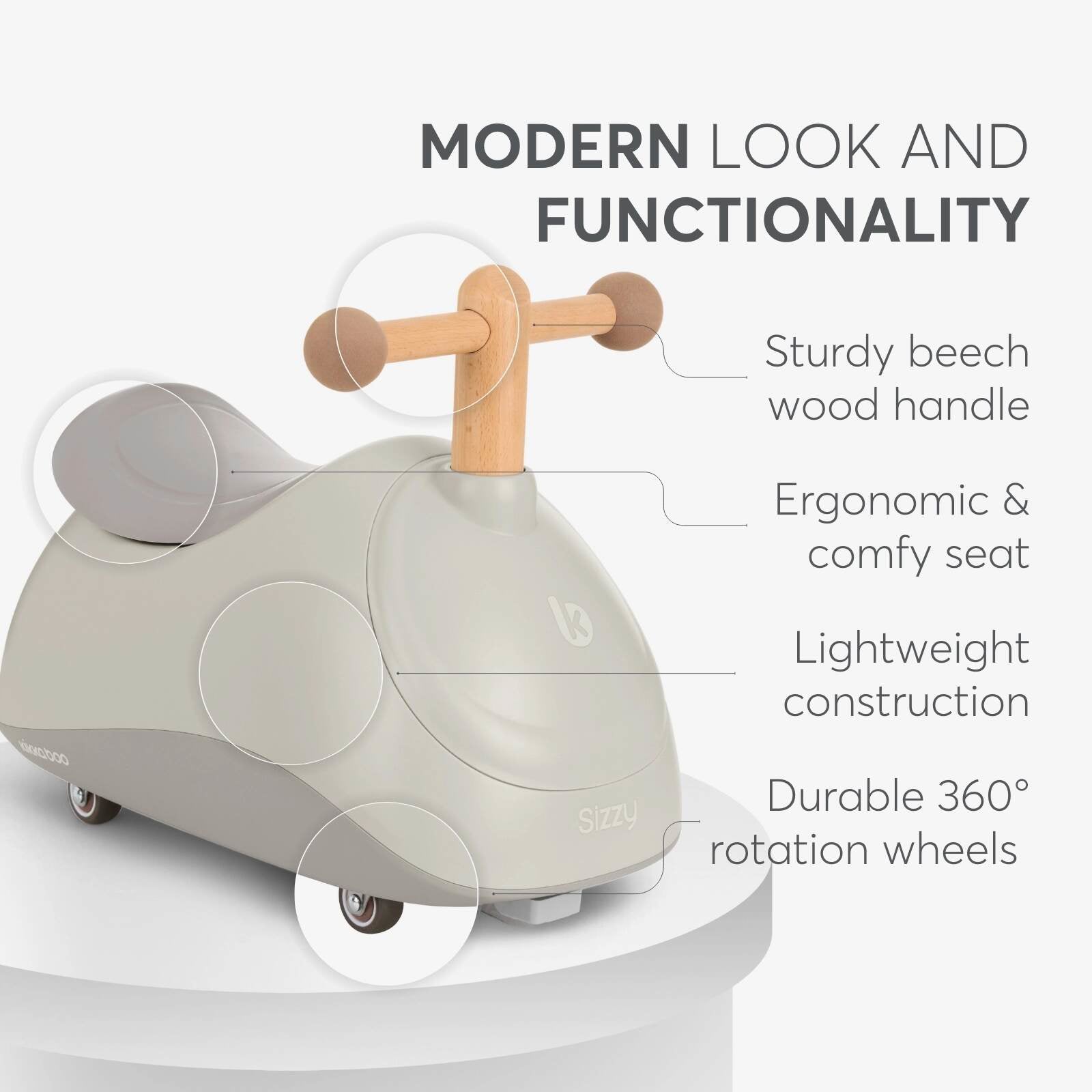 KikkaBoo® višenamjenska guralica dizajnirana je za djecu od 1 do 3 godine i nudi dinamično iskustvo igre uz visoku razinu sigurnosti. Zahvaljujući višesmjernoj funkcionalnosti, mališani mogu jednostavno manevrirati, dok prednji i stražnji zaštitnici sprječavaju prevrtanje i omogućuju bezbrižnu igru.