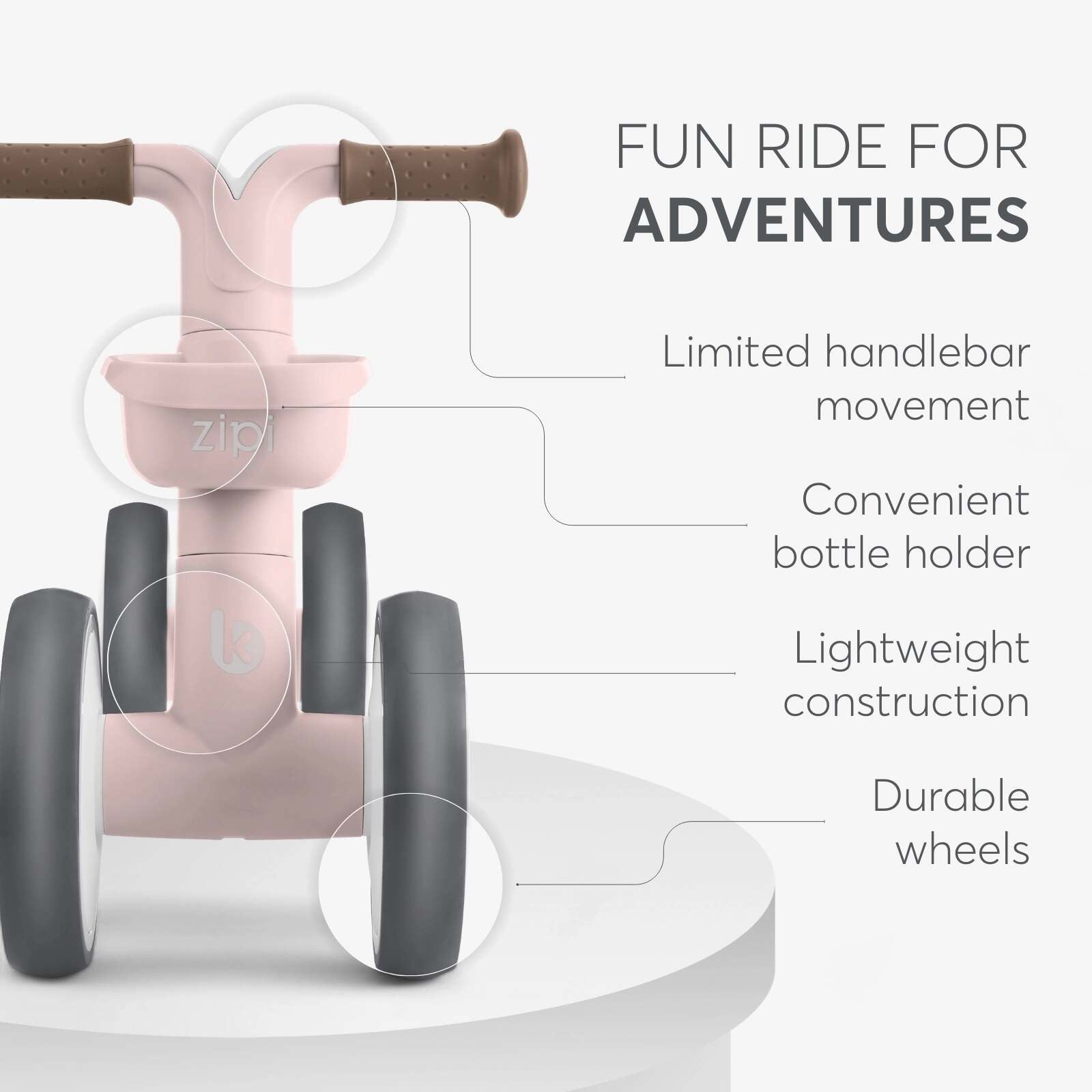 Sigurnost i udobnost: ZIPI ima neklizajuće ručke, mekano sjedalo s zaobljenim rubovima i izdržljive EVA kotače koji omogućuju glatko kretanje po svim vrstama podloga. Praktična uklonjiva košarica savršena je za nošenje omiljenih igračaka gdje god krenuli.