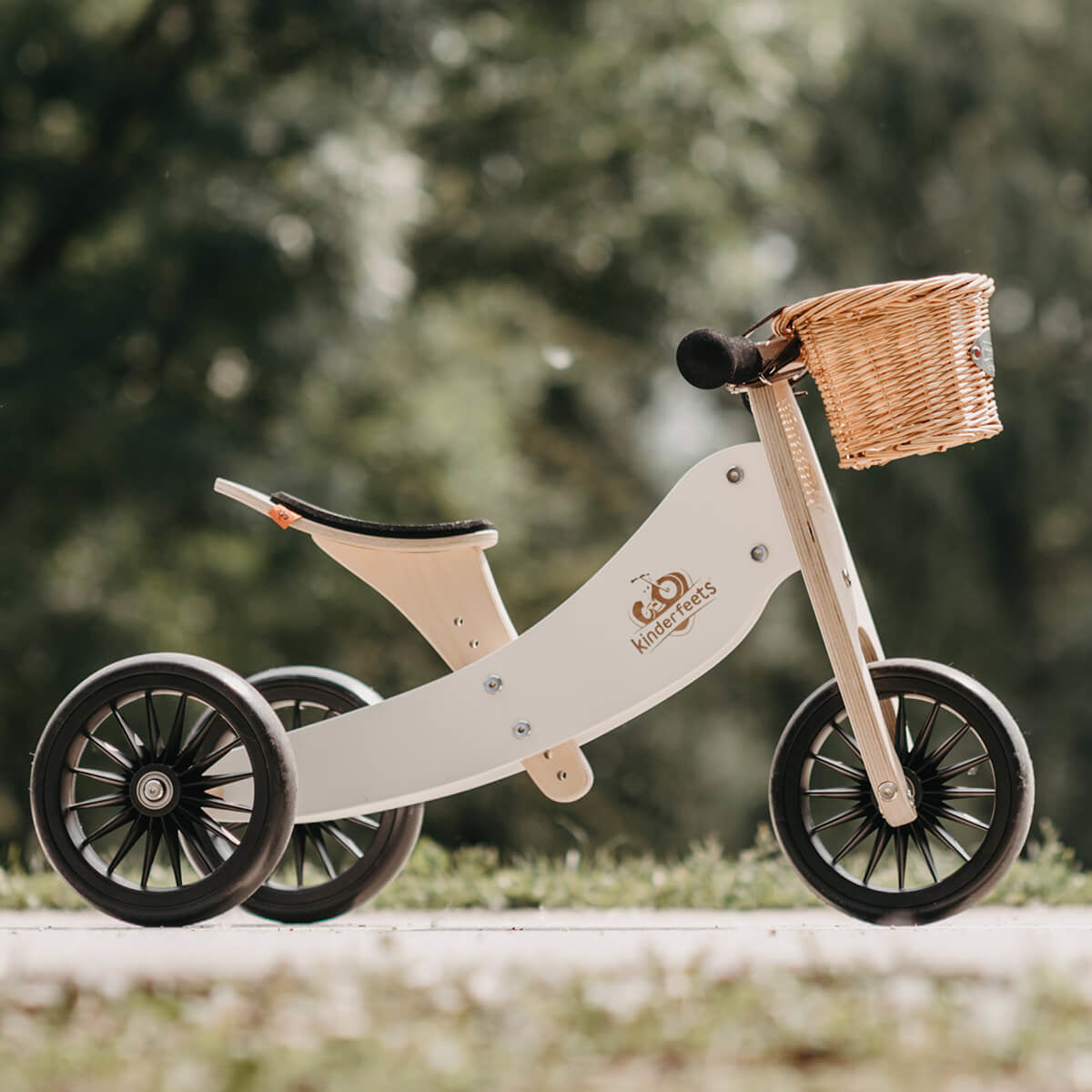 - Ručno izrađen od drva breze dobivenog iz obnovljivih izvora (za svaki prodani bicikl Kinderfeets posadi drvo)
