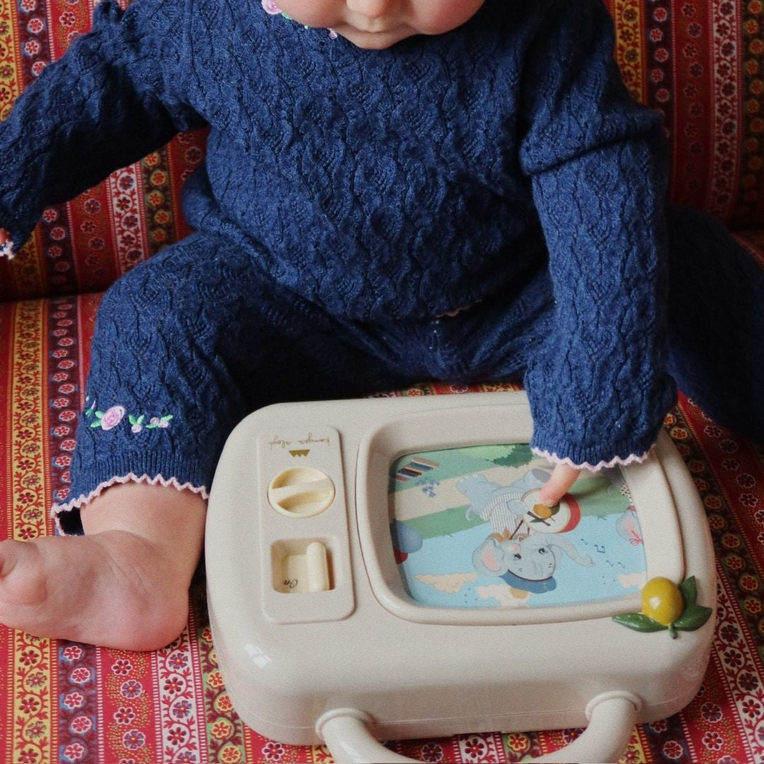 Ova simpatična igračka stvorena je za smirivanje najmlađih uz umirujuće zvukove i veseli animirani ekran. Okrenite gumb u suprotnom smjeru od kazaljke na satu kako biste aktivirali pomični ekran. Slike na ekranu će pratiti zvučne melodije i pružiti vašem djetetu ugodan i smirujuć trenutak.