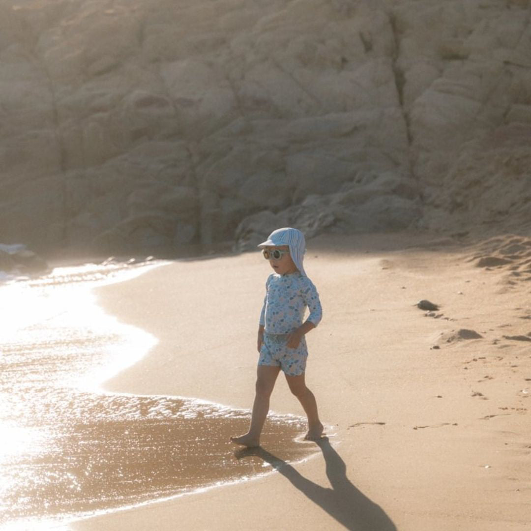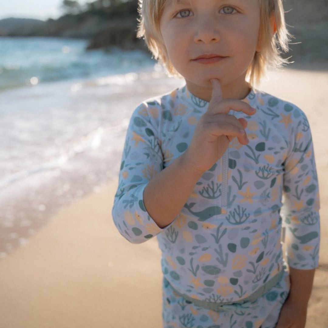 Zasjaj sa stilom na ljetnoj vodenoj avanturi! Ova majica s dugim rukavima i UV zaštitom pruža vašem mališanu toplinu u vodi i učinkovitu zaštitu od sunca tijekom cjelodnevne igre. Bez obzira na to trči li po valovima ili uživa u plutajućem prstenu – ova majica je savršen izbor za ljetne aktivnosti uz more.