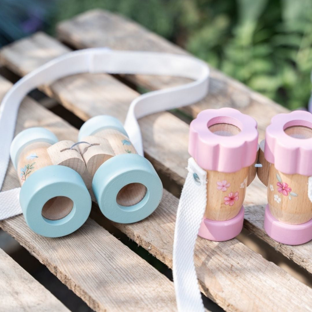 Istražite prirodu ovim drvenim dalekozorom! Ukrašen prekrasnim bojama i ilustracijama, ovaj dalekozor svaku avanturu čini uzbudljivom. Uistinu povećava i može se prilagoditi udaljenosti između vaših očiju za optimalan vid. Pamučna vrpca s čičkom osigurava da dalekozor sigurno visi oko vašeg vrata. Idealno za znatiželjne istraživače koji žele istražiti svijet oko sebe!