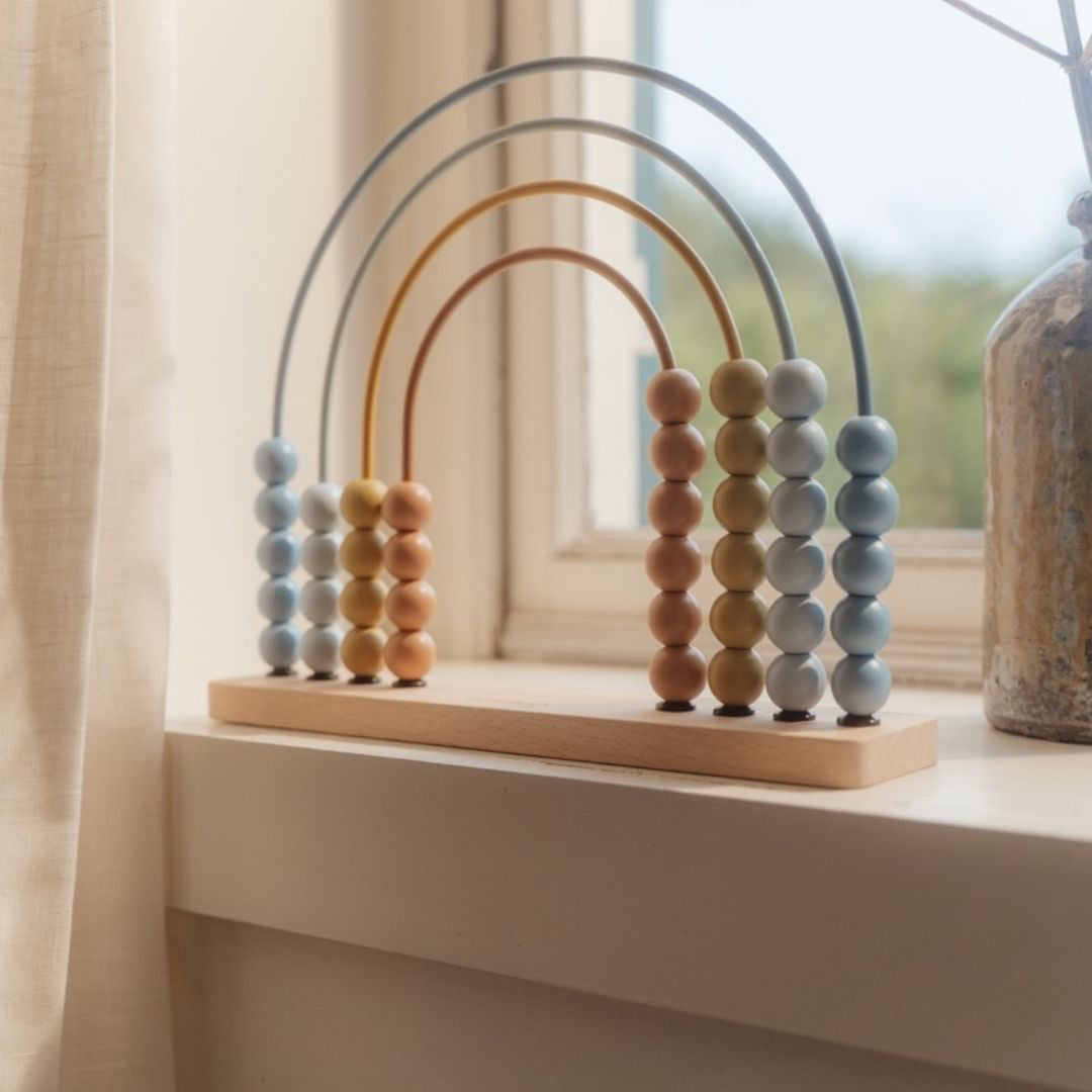 Drveno abakus računalo poznatog nizozemskog brenda Little Dutch. Učenje, kako se broji, će biti zabavnije uz abakus. Računalo u obliku duge je napravljeno od metalnih lukova u boji na drvenoj podlozi s 10 drvenih kuglica na svakom luku. Abakus nije samo edukativan već i idealno dopuni dnevnu sobu ili sobicu mališana.