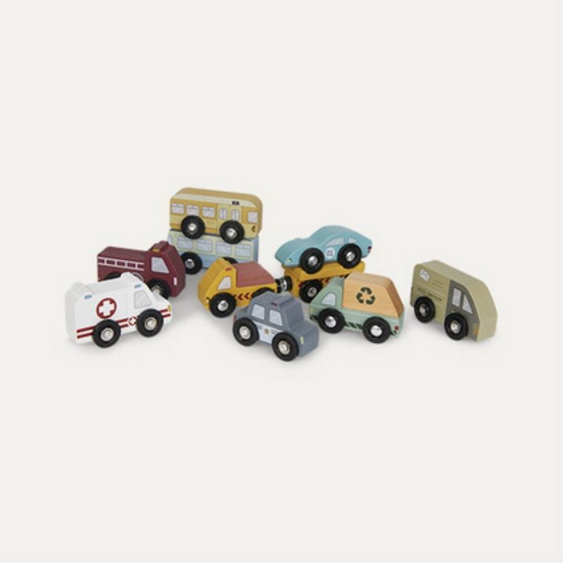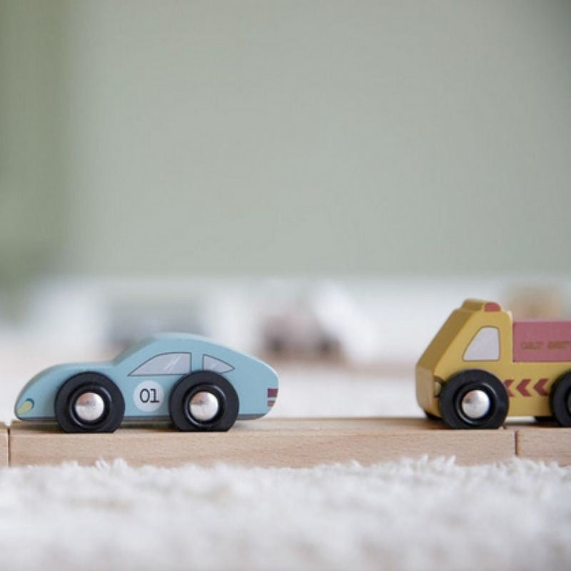 Ovaj set drvenih vozila, dizajnirani su i za korištenje u kombinaciji s drvenim vlakom Little Dutch. Gume su kompatibilne s tračnicama, omogućujući vozilima da se voze gradom i pomažu gdje treba. Upotpunite vozila kompletom XXL za vlak.