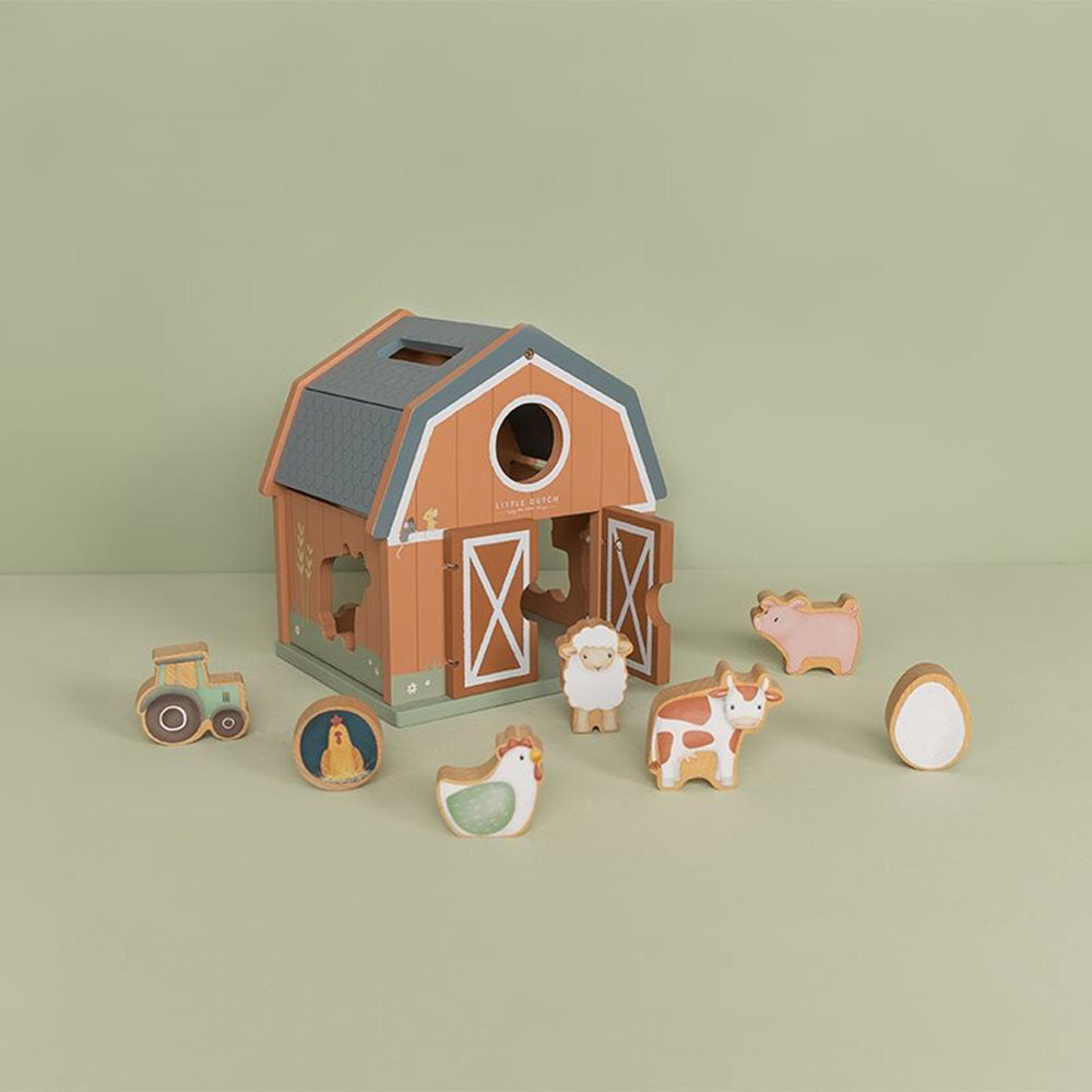 Pobrinite se da domaće životinje uđu u ovu veselu drvenu staju. Pronađite pravi oblik! Životinje mogu izaći kroz vrata staje. Ručke će lako uhvatiti oblike kako bi ih gurnuli u ispravan otvor. Ova klasična igračka je i poučna i zabavna!