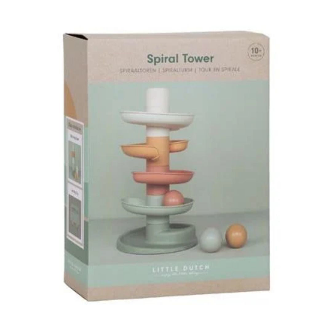 Zakotrljaj lopticu! Simpatični spiralni toranj koji se brine za zabavu! Šarena igračka koja se sastoji od 5 mekanih dijelova koje možete dijete s lakoćom složiti. Spustite loptice jednu za drugom sa najvišeg dijela i promatrajte kako se kotrlja prema dnu. Igračka poboljšava koordinaciju očiju i ruku te dijete ući koncepta uzroka i posljedice. Spiral Tower uključuje 3 velike loptice u različitim bojama koje odaju malo zvuka kod kotrljanja.
