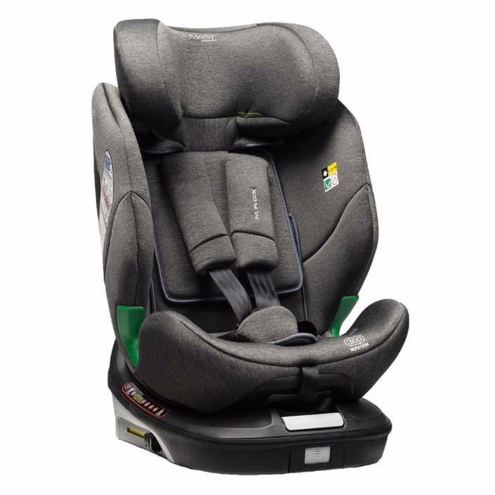 Mast autosjedalica M.ROX je revolucionarno dizajnirana dječja autosjedalica koja omogućuje rotaciju od 360 stupnjeva i usklađena je sa standardom i-Size ECE R 129/03, osiguravajući sigurno i udobno putovanje vašeg djeteta od rođenja do otprilike 12. godine života.