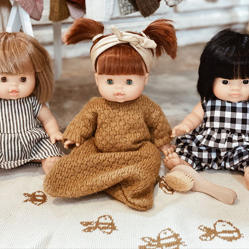 Lutke brenda Miniland su napravljene od netoksičnog vinila koji je prijatan za okoliš. Lutkice su posebne, jer imaju dodanu nježnu aromu vanilije i primjerene su veličine da ih može vaš mališana držati svojim malenim rukicama. Vaš mališan ju može obući u odjeću za mališane ili u odjeću za lutke brenda Minilanda.