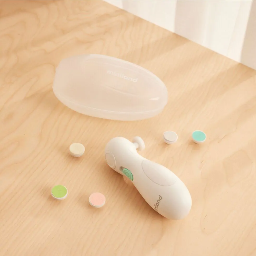 Miniland električni set za turpijanje noktiju savršen je alat za brzo, jednostavno i sigurno oblikovanje i poliranje noktiju beba, djece i odraslih. Uključuje 6 izmjenjivih nastavaka i 2 brzine kako bi odgovarao svim članovima obitelji – nježno, učinkovito i bez stresa.