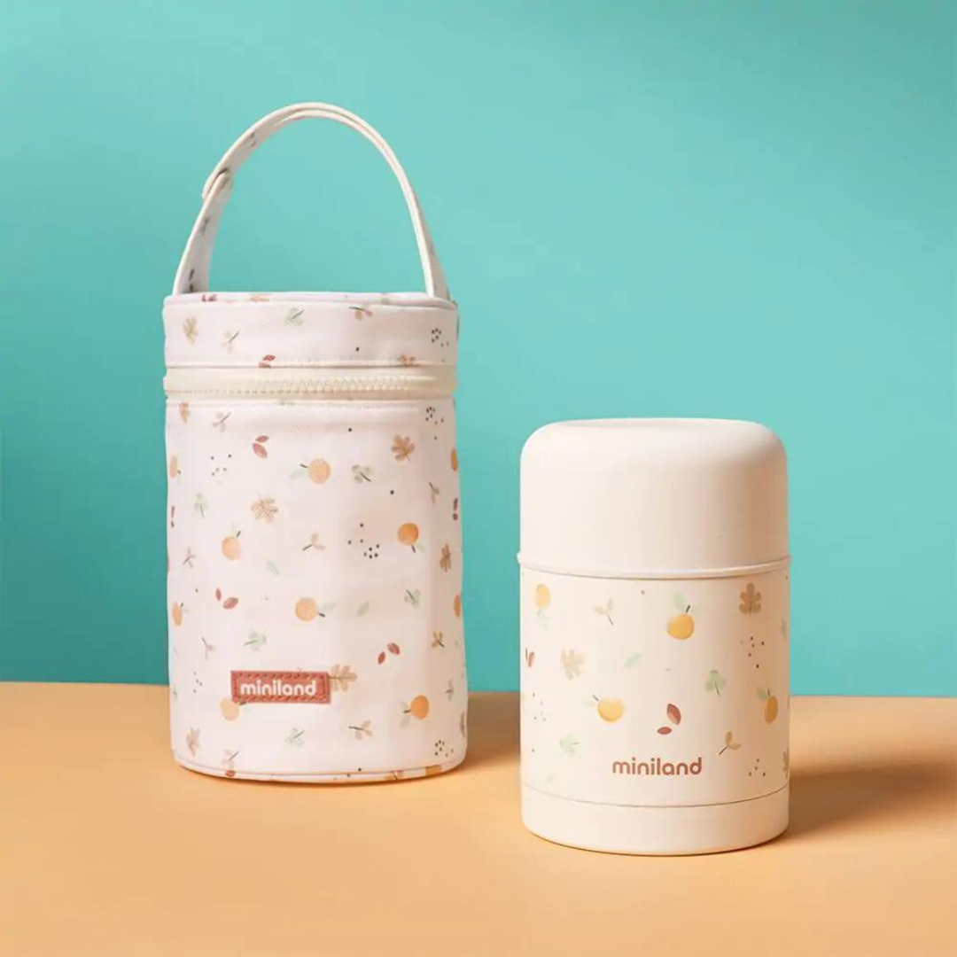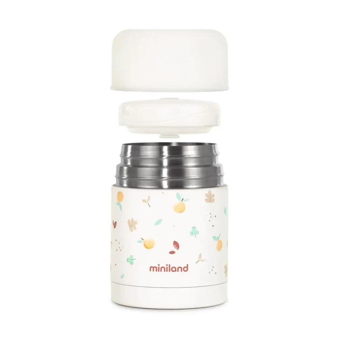 Miniland® termos za čvrstu hranu i kašice od 600 ml savršeno je rješenje za održavanje temperature dječje hrane kod kuće ili na putu. Zahvaljujući dvostrukoj stijenki od nehrđajućeg čelika i posebnom sloju aluminija, učinkovito održava toplinu ili svježinu hrane više od 12 sati. Vanjska površina s mekanim gumiranim slojem čini ga ugodnim za držanje i otpornim na udarce.