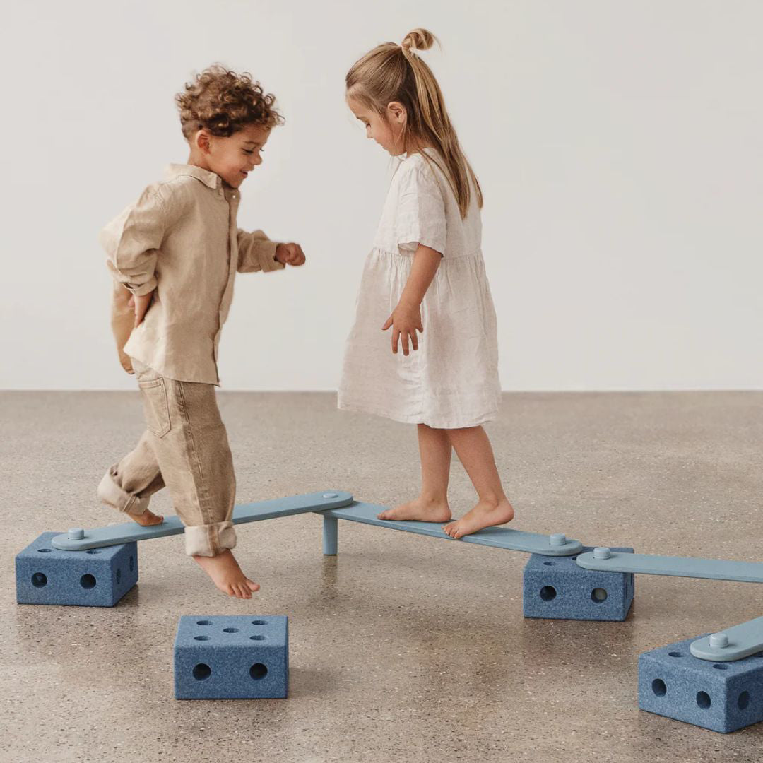 S ovim setom greda i blokova djeca mogu kreirati vlastite staze za ravnotežu, poboljšavajući koordinaciju i motoričke vještine s najmanje 10 različitih staza na raznim razinama — i još mnogo toga za istraživanje! Balansirajuće grede izrađene su od FSC certificiranog brezovog drva, obrađenog prirodnim lanenim uljem, što osigurava održivost, izdržljivost i dizajn koji se uklapa u svaki dom. S nebrojenim mogućnostima slaganja, savršeno potiče maštovitu igru i aktivno učenje.