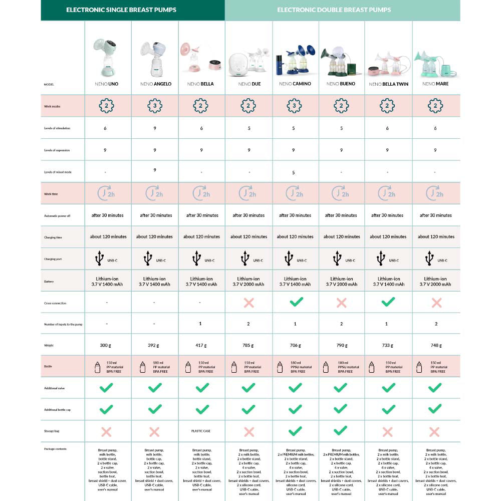 Neno Primo je 2-fazna bežična jednostruka električna izdajalica dizajnirana za udobnu i jednostavnu uporabu. Uz način stimulacije i izdajanja (5 i 9 razina), omogućuje učinkovito i sigurno prikupljanje mlijeka. Kompaktna i lagana, lako stane u torbu – savršen izbor za mame koje se vraćaju na posao, ali žele nastaviti dojiti.