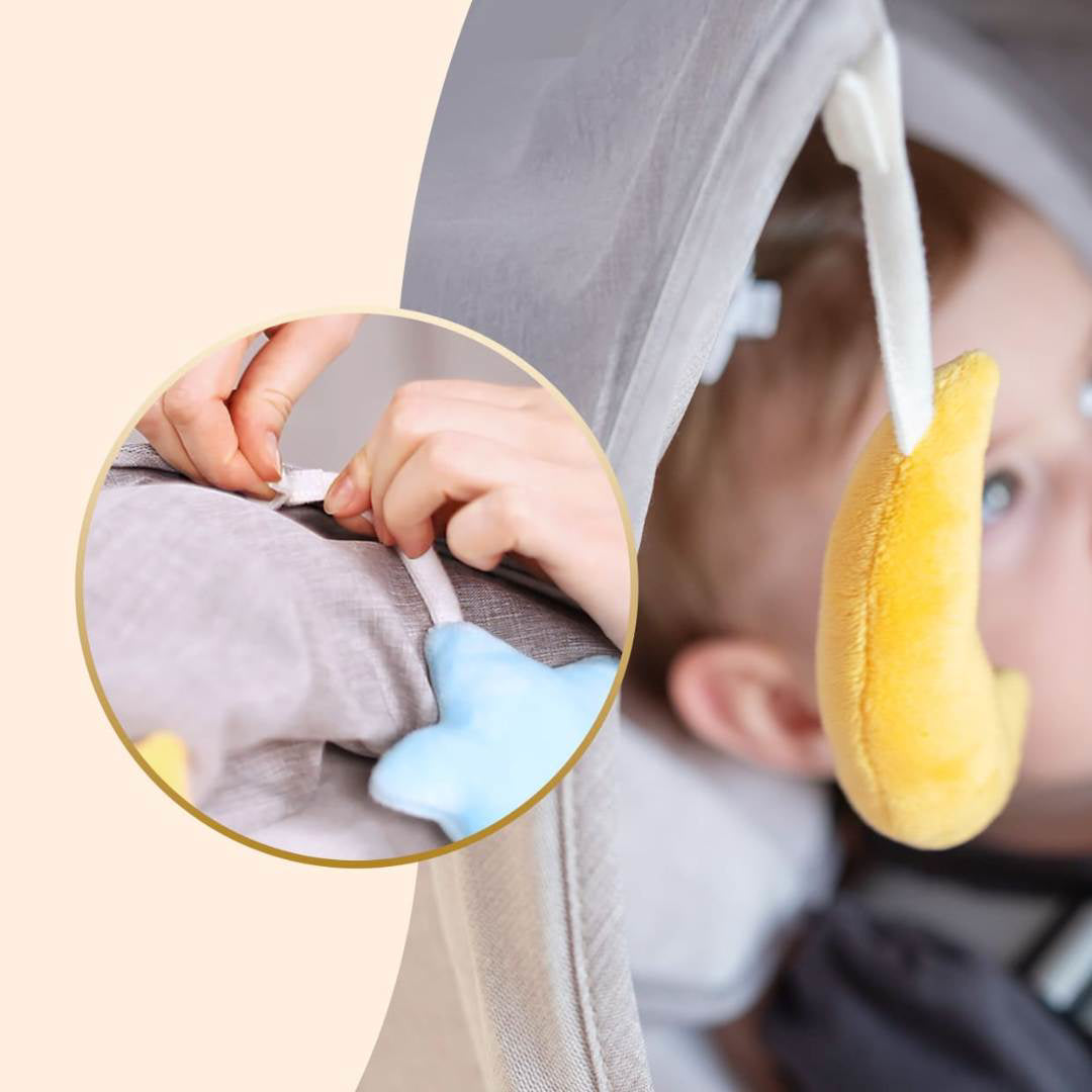 - Odvojive plišane igračke: Vizualna stimulacija s mekanim mjesecom i zvjezdicom.