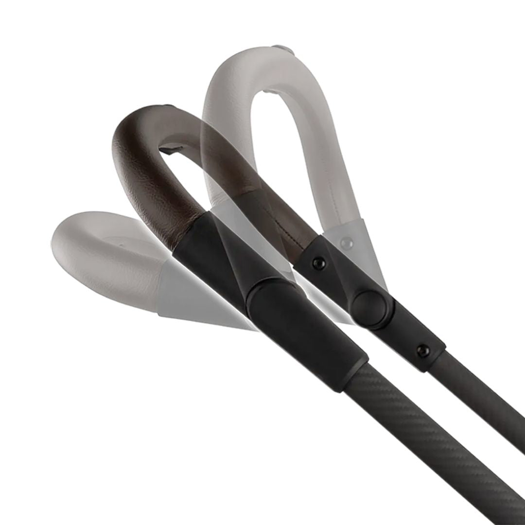 Drška je izrađena od umjetne kože, što osigurava udobnost i dodatni stil. Proširiva krovna navlaka s prozračnim mrežastim prozorima tiho se zatvara magnetskim kopčama ili se može zatvoriti i patentnim zatvaračem. Sjedalo za sva godišnja doba osigurava da je vašem djetetu udobno u svim temperaturnim uvjetima. Priložena kišna navlaka štiti dijete od vremenskih uvjeta, pa se možete uputiti u šetnju kad god poželite.