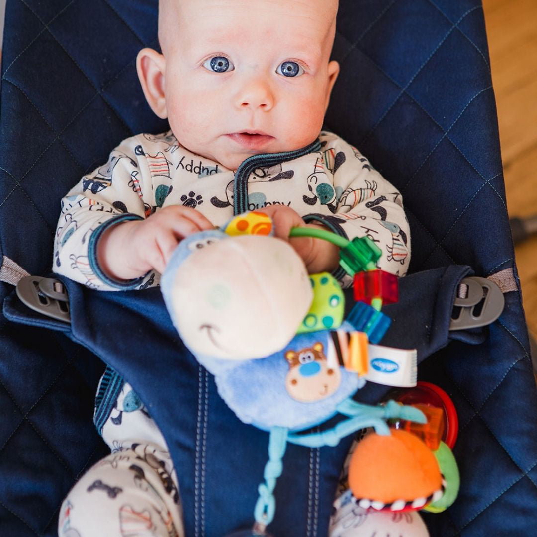 Ropotuljica Clip Clop u obliku simpatičnog plišanog konjića dizajnirana je za poticanje motoričkih vještina vašeg mališana i potiče istraživanje kroz igru. Žive boje i različiti materijali privlače djetetovu pažnju, a zvukovi ropotanja dodatno zabavljaju.