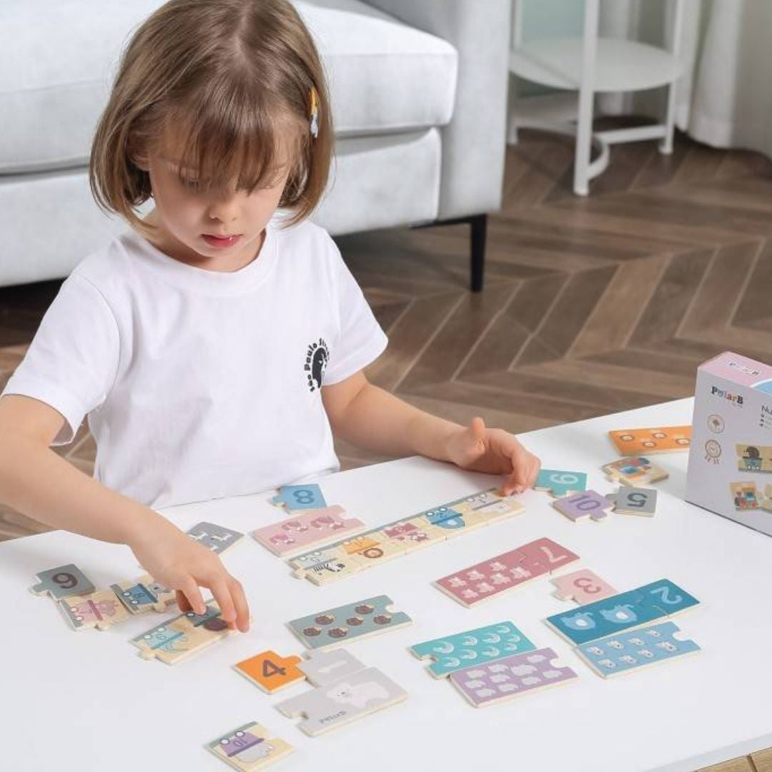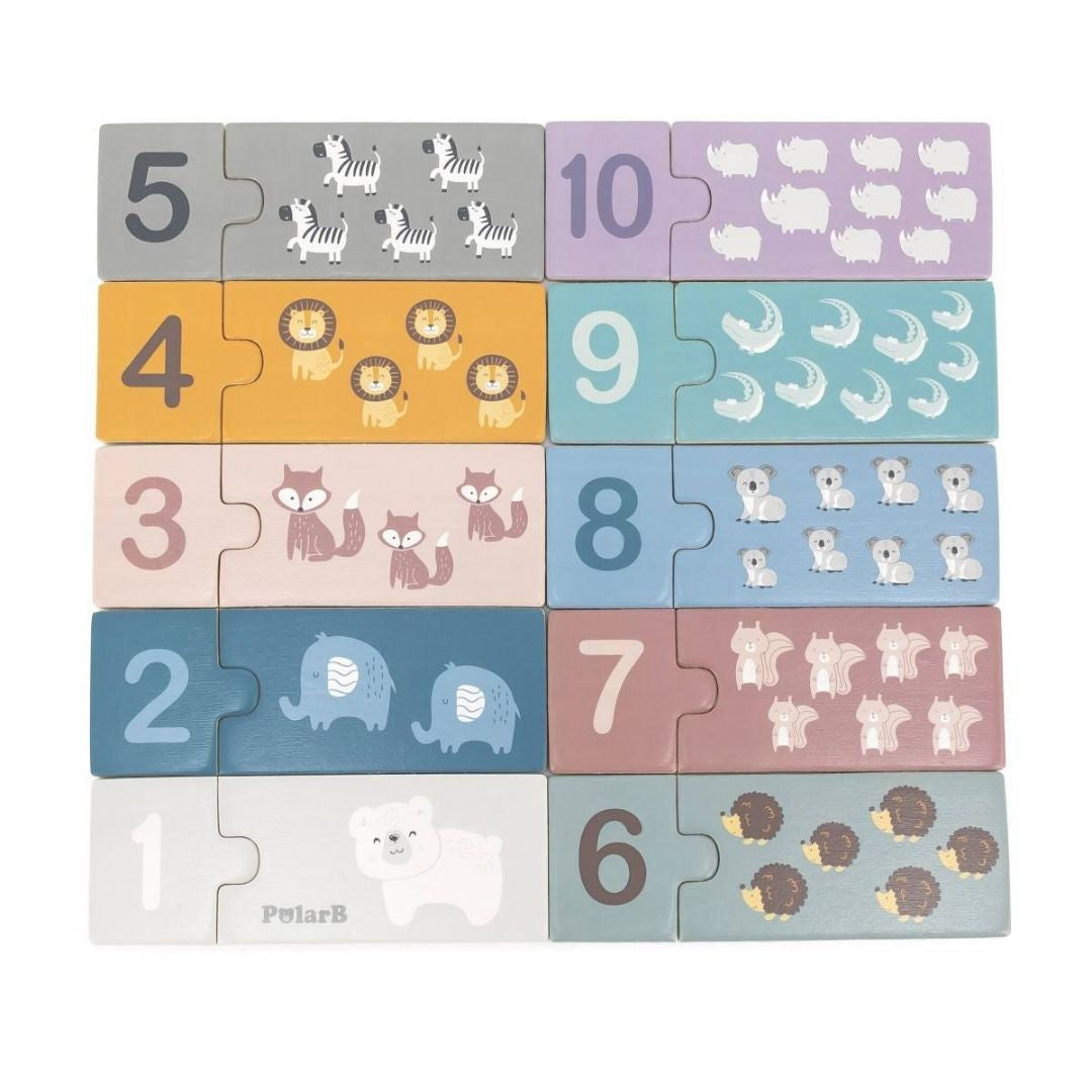 PolarB® Sastavljanka Brojevi je prekrasna drvena igračka koja djeci pomaže u upoznavanju brojeva, količina i osnovnih matematičkih vještina. Tijekom igre djeca prepoznaju oblike, boje i simpatične životinje poput zebre, lava, slona, lisice, nosoroga, ježa, vjeverice, krokodila i polarnog medvjeda.