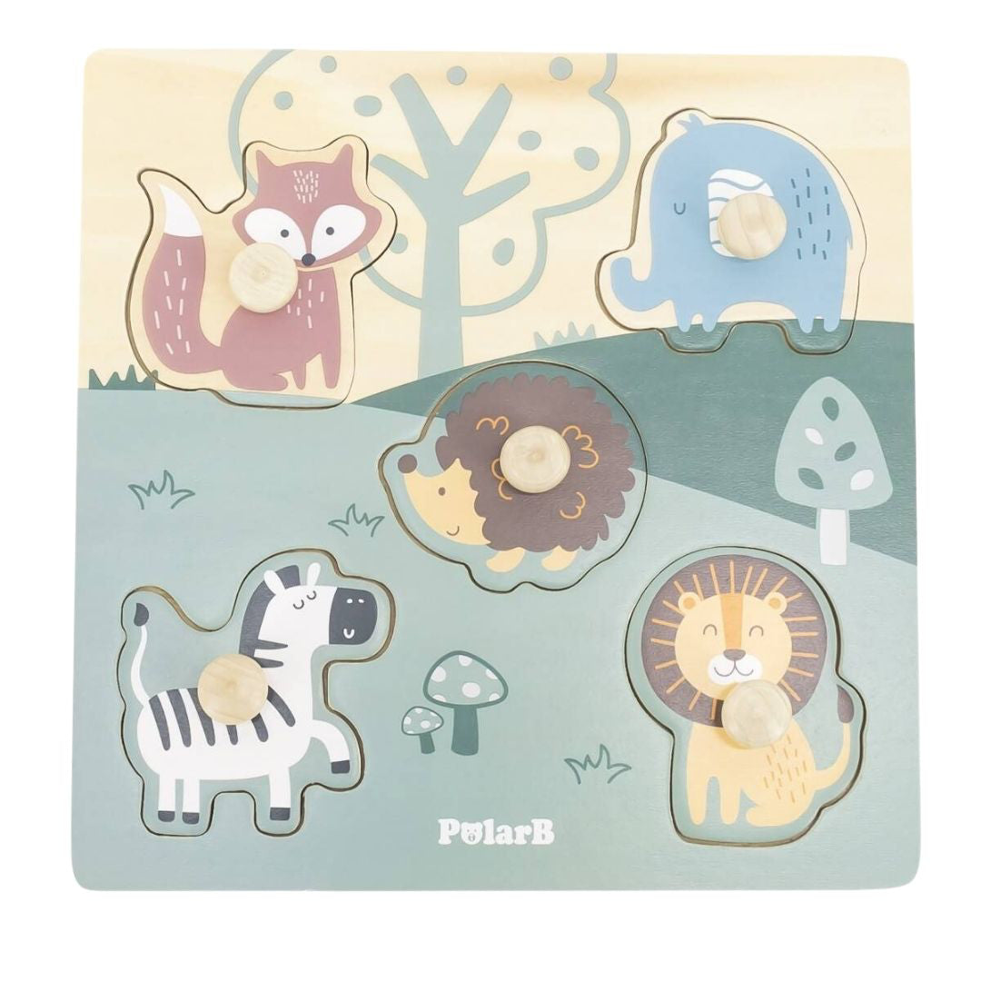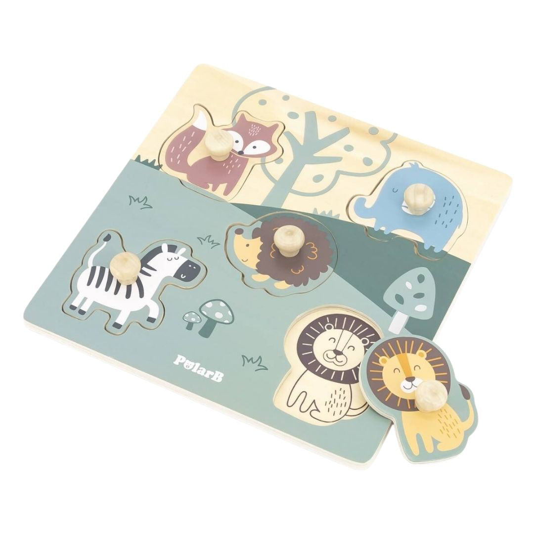Drvena sastavljanka s motivima životinja iz linije PolarB savršen je odabir za najmlađe jer potiče razvoj motoričkih sposobnosti, a istovremeno jača prepoznavanje boja i osjećaj za dodir. Zahvaljujući drškama na pojedinim dijelovima, rukovanje njima je jednostavno i zabavno za male ruke.