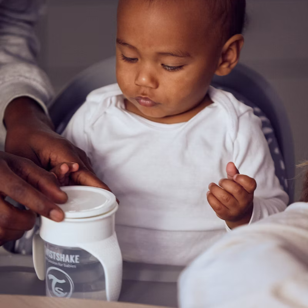 Inovativna Twistshake 360 čaša pomaže djetetu naučiti samostalno piti. Rub od 360° omogućuje pijenje sa svih strana, baš kao iz obične čaše. Silikonski ventil automatski se zatvara kada dijete prestane piti – bez prolijevanja.