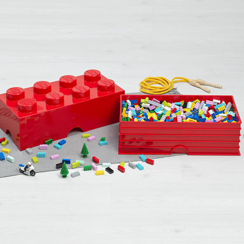 Pulire non era mai cosi divertente! Con il cassetto LEGO tutto diventa piu semplice. Nella scatola con il cassetto, si può tenere vari giocattoli, cubi LEGO, forniture da ufficio e altri oggeti piccoli. Il cassetto si può usare anche nella cameretta, per i pannolini, le copertine e altre cose di nostri piccolini. La scatola si può tenere sul tavolo, sulla mensola oppure sul pavimento, perche è progettata in modo tale, da poter unire più cassetti identici insieme. Decorate il vostro appartamento con tante scatole con il cassetto LEGO.