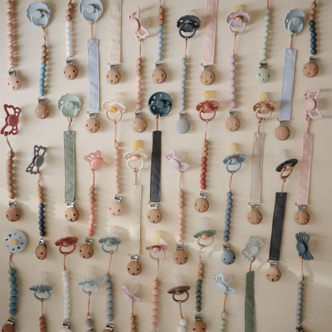 Il portaciuccio in lino Mushie mantiene il ciuccio pulito e sempre a portata di mano. La confezione include 2 pratici portaciucci realizzati in lino naturale, con clip in silicone effetto legno che si fissano saldamente ai vestiti senza rovinarli.