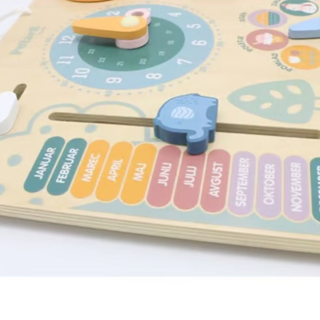 - Učenje skozi igro: Otroci spoznavajo dni, mesece, letne čase, vreme, čas in datum.