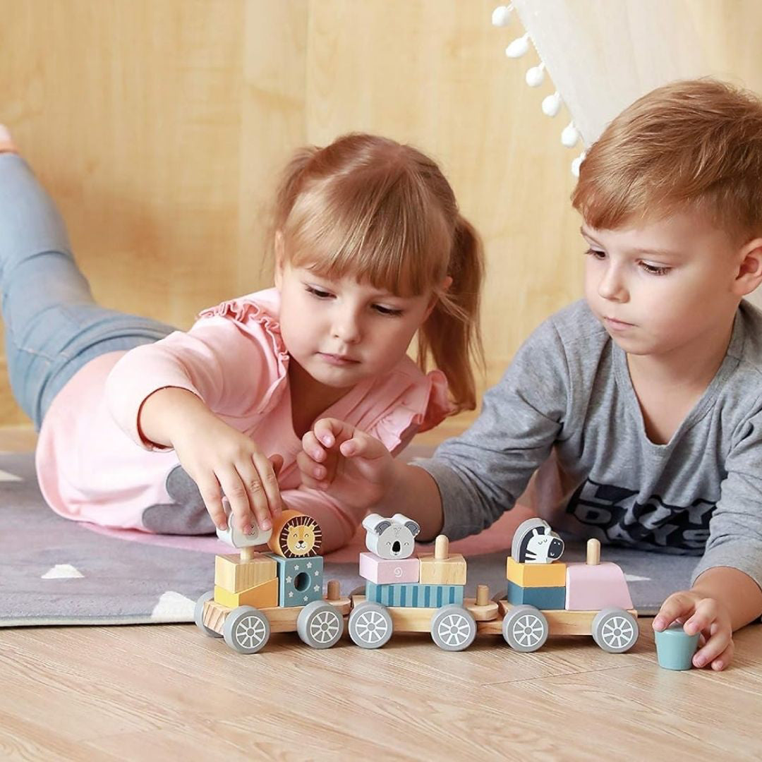 Vlak je opremljen z barvnimi bloki in figuricami ljubkih živali, kot so polarni medvedek, zebra, lisica, levček in koala. Med igro otrok raziskuje nežne pastelne barve ter se uči zlaganja, sortiranja, gradnje in sestavljanja. Lahko ustvarja različne konstrukcije, kar spodbuja njegovo domišljijo, kreativnost in ustvarjalnost.