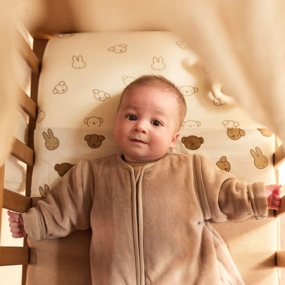 Ta prikupen posteljni komplet s prevleko za odejo in vzglavnik prinaša prijetno, toplo vzdušje v otroško sobo. Velik potisk prikazuje Miffy in njene prijatelje na nežni slonokoščeni podlagi. Obrazki v mehkih odtenkih nugata in biskvita dajejo celotnemu kompletu umirjen in nežen videz.